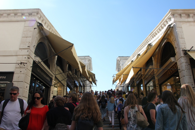With tummies that were finally full but nearly satisfied, we found the right waterbus to take us to the main part of Venice. I was stuck under some guys armpit the entire way. It was super. The first sight that we saw was the Bridge of Sighs. We only got to see it from the outside, but that was enough for me. There were SO many people.