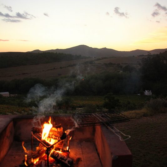 Each cottage has their own braai place that overlooks the vineyards and mountains.  The perfect place to watch the sunset as you rustle up some supper.