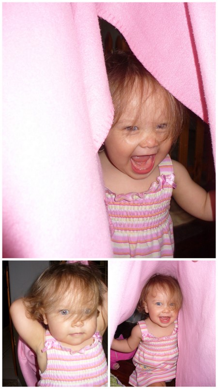 Kyla is often really funny to watch when she is just playing by herself. This is one of those moments. She was playing Peek A Boo with us with her blanket, over and over again. Killing herself laughing with each reveal. So flipping cute!!
