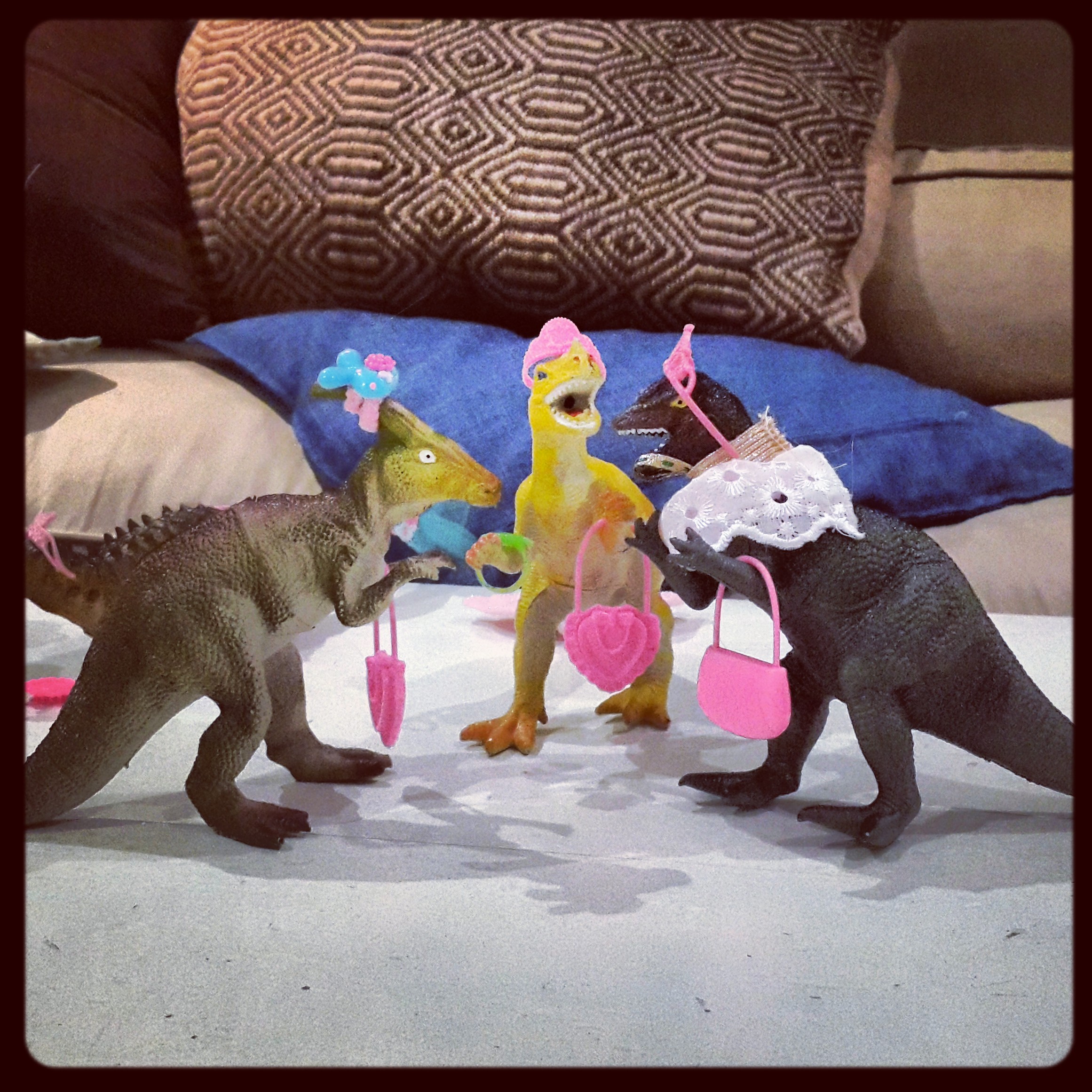 On the third night of “TTTTCAENBC” those naughty dinosaurs got totally dressed up daaaaaahling. I can just hear them in my mind, “Oh you know Beatrice, have you seen how wrinkly Petunia is looking nowadays – she just isn’t taking care of herself like she should!”. “And have you seen her teeth?! I don’t think she has EVER used a toothpick before!”