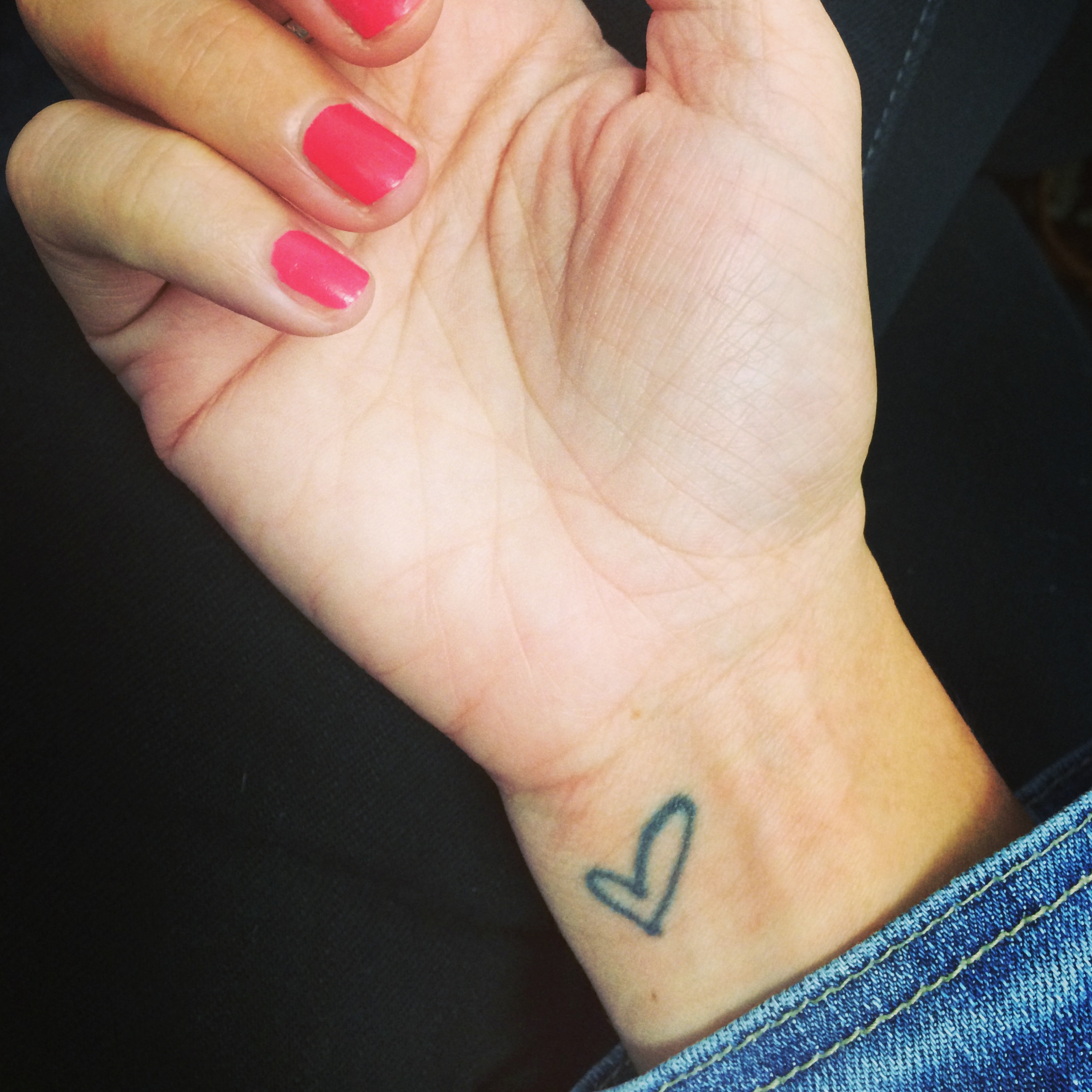 I have a small ‘loony tunes’ heart on my right wrist (I call it my loony tunes heart cause it’s wonky looking) and then a small, medium and large star on my right ankle/foot area.  I’ve always wanted tattoos. While at school my mom would get very angry when I came home from school full of permanent marker drawings on my hands and arms.  I told myself I’d get a tattoo as soon as I finished school but then didn’t have the guts to do it. Then I said I’d do it when I graduate University, but chickened out again. After a bad break up with a guy I truly adored I made an appointment, drove to the Tattoo place and pulled out the old crumpled picture of what I wanted from my wallet.  2 years later I bumped into said ex’s best friend, we chatted for hours and soon after we started dating. It was a difficult relationship full of ups and downs and he eventually broke my heart. I once again found myself at the tattoo place with my drawing in hand. Most girls colour or cut their hair after a break up. I get tattoo’s apparently. The next guy I dated is now my husband so no new tattoos.