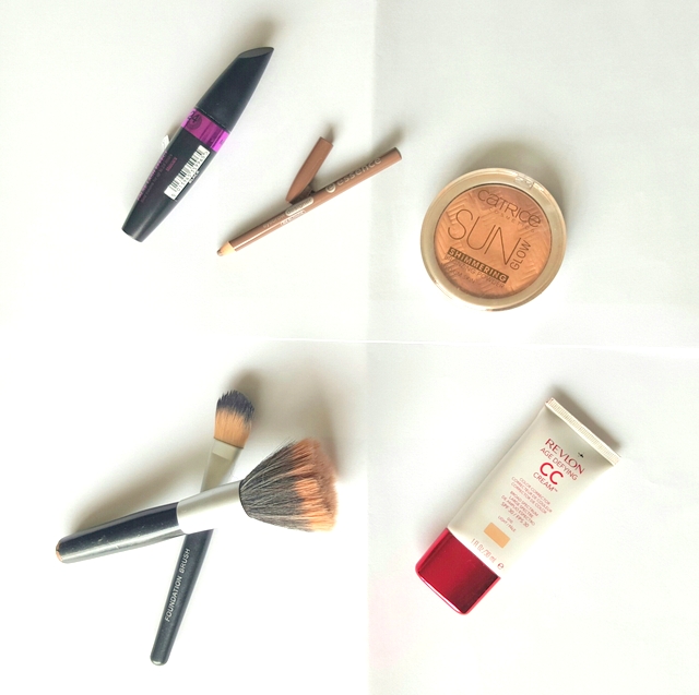 That’s mascara, eyebrow pencil, bronzer, foundation, blush brush and foundation brush. Easy peasy.