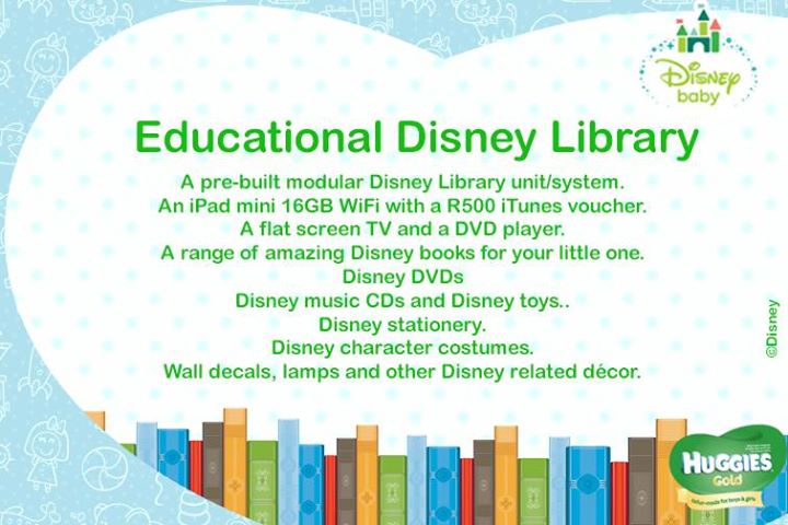 Huggies® Gold for Boys and Girls have a new exciting competition aimed towards helping parents to encourage their baby to thrive. Entrants stand a chance to win 1 of 4 weekly prizes of magical Disney© Book hampers to the value of R1,500 each and 5 grand prizes of a Disney© educational library to the value of R85,000 each. Competition runs from 1 August 2015 – 31 December 2015. Obviously there are some Terms and Conditions that will apply. For T&C’s check out www.huggies.co.za or call 0800 115-711.