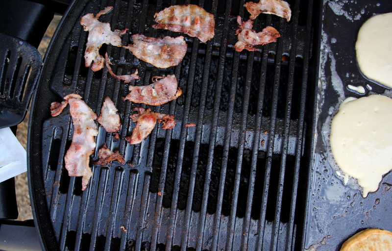 As usual, I was running late.  I don’t know why that always happens to me. I thought I had everything stocked in the pantry so I could start preparing before our guests arrived, but obviously I overlooked some key ingredients, like milk. Ugh.  But after running off to the shops and then whipping up our flap jack batter it was just a matter of turning on the gas to get the Weber going.  And with the kids not having eaten yet, we all breathed a sigh of relief when the flap jacks started rolling out.