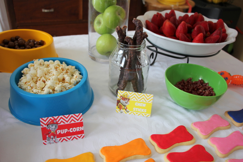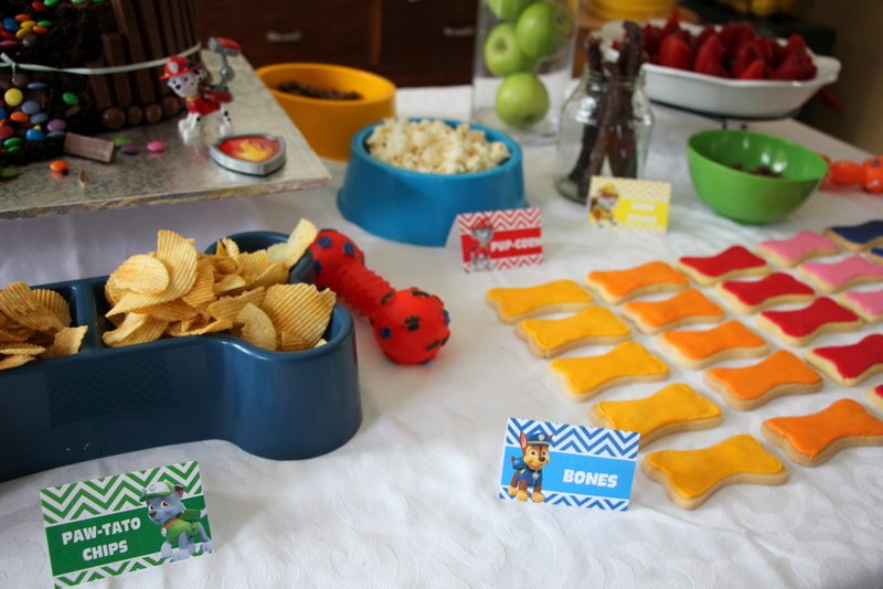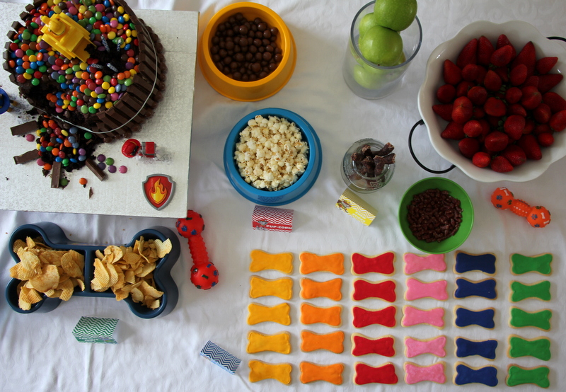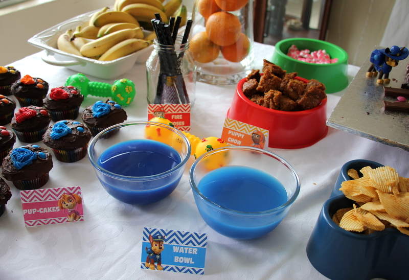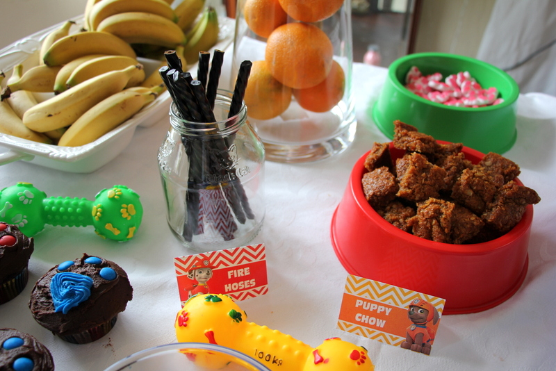 We did jelly water bowls, paw sweets (from Woolies right now – the Cheetah saving packet thing), fire hoses for Marshall, paw-tatoe chips, pup corn, pup cakes and puppy chow.