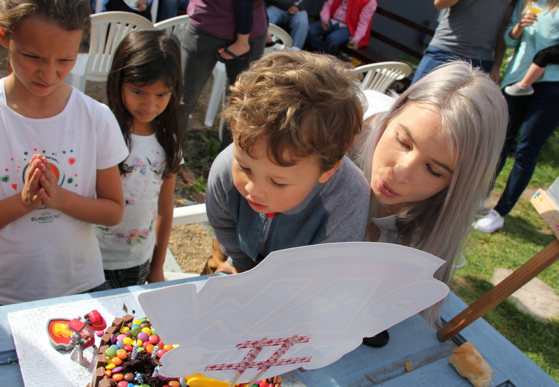 We had our party on Heritage Day so we had a hotdog/boerewors roll station for everyone to indulge in.  Each one was a different one of the pups.  Not too creative, but everyone loved it!  They smashed those rolls in seconds.