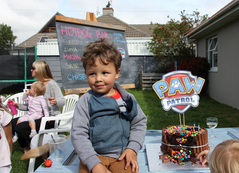 Originally we were going to have a Three Little Pigs Party, but he is just so freaking smitten with Paw Patrol right now that it would have been mean not to go with that as the theme.  Every time we leave the house he asks if we’re going to the toy shop to go and buy him a Chase.  So yes, he’s more committed than I am to like, chocolate.