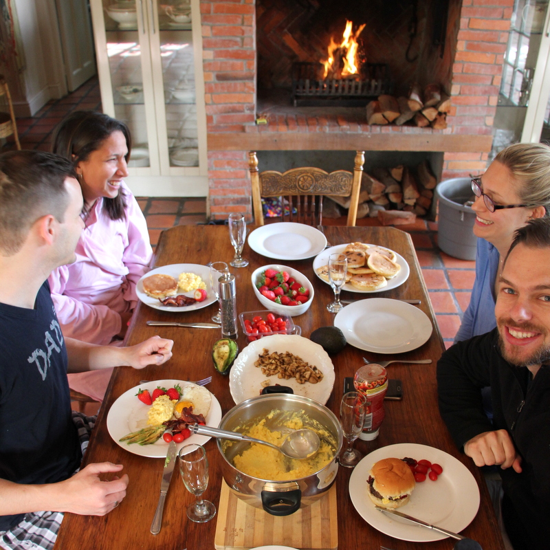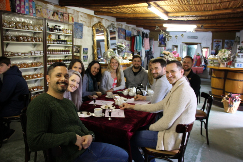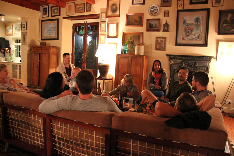 Then we headed back and were joined by Simon and Claudette. Then later just before supper, Brian, Lisa and 4 month old Jude joined us. The next morning we had a hearty home cooked breakfast and then Zoe, Corne, Brittlee and Jared were welcomed into the Tulbagh fold. Obviously our first stop was the chocolate tasting, followed by wine tasting and then lunch at one of the wine farms. We swopped our fancy supper for the fancy lunch and so we scavenged from all the goodies that we brought with for supper. There were gourmet Salticrax with melted Camembert, onion marmalade, avo and braaied boerewors which were actually really tasty as well as Nik Naks galore. The next morning we headed to the Hotel for a breakfast that we didn’t have to clean up. It was so chilled and relaxed. I’m really glad that we had the opportunity to do this.
