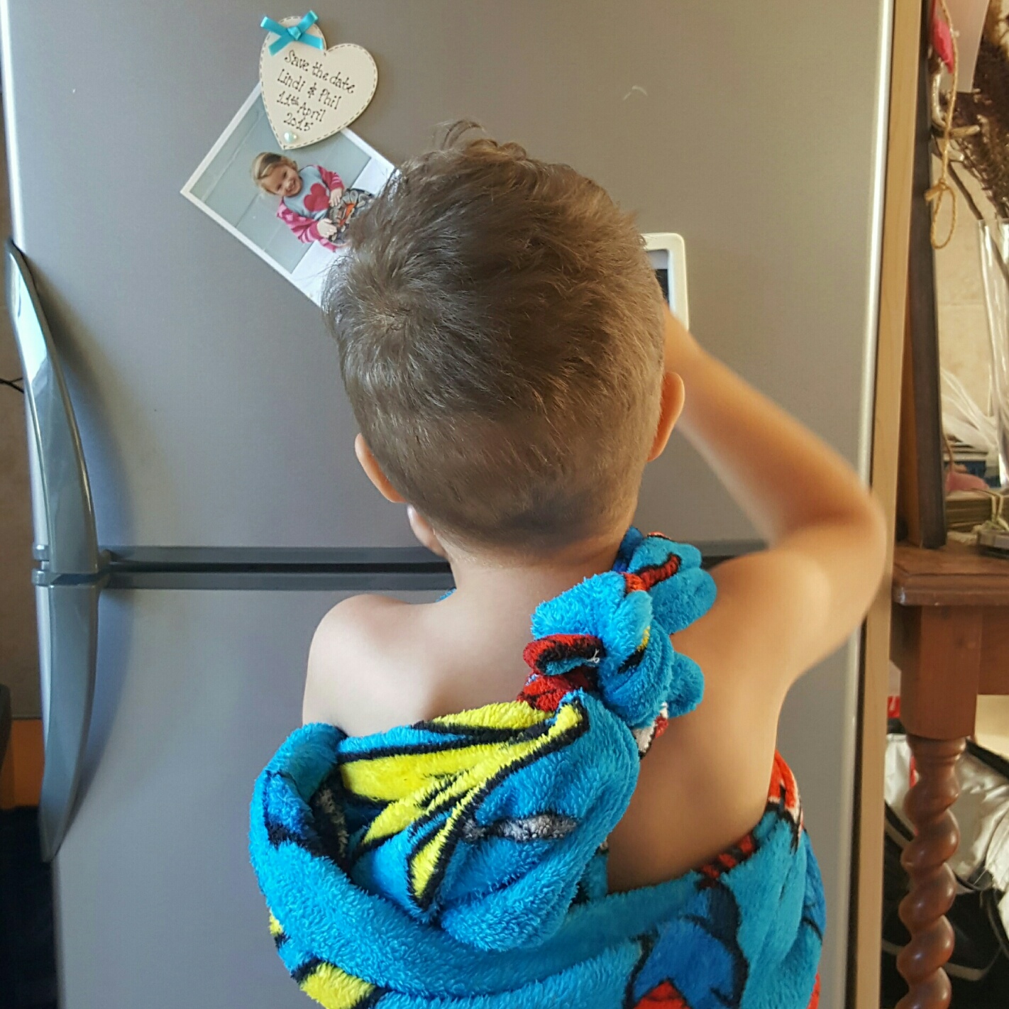 Knox has been keeping me company in his Spiderman toga (don’t ask, I couldn’t even tell you if I tried), while I cook in the afternoons. He’s been keeping himself busy playing with all the magnets on our new fridge, so I think he approves too.