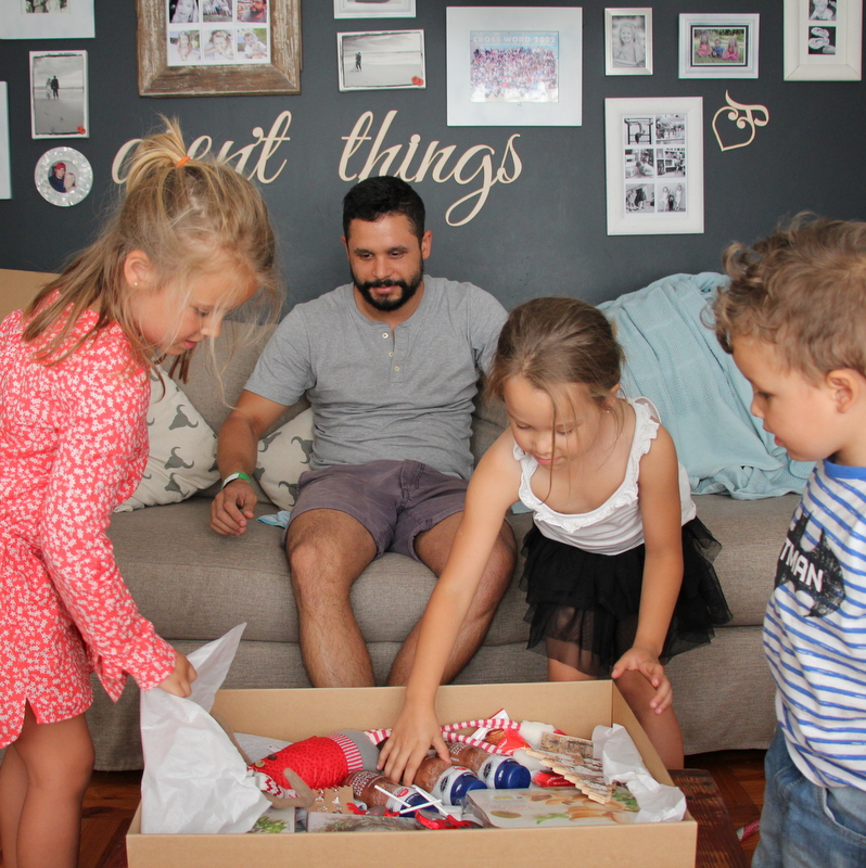 I made us a Christmas Traditions surprise box. I filled it with all the things that I pictured when I thought of us having the best time. Christmas jammies, special decorations, treats, mince pies, hot chocolate (but milkshakes because it’s hot here) and even some Christmas earrings.