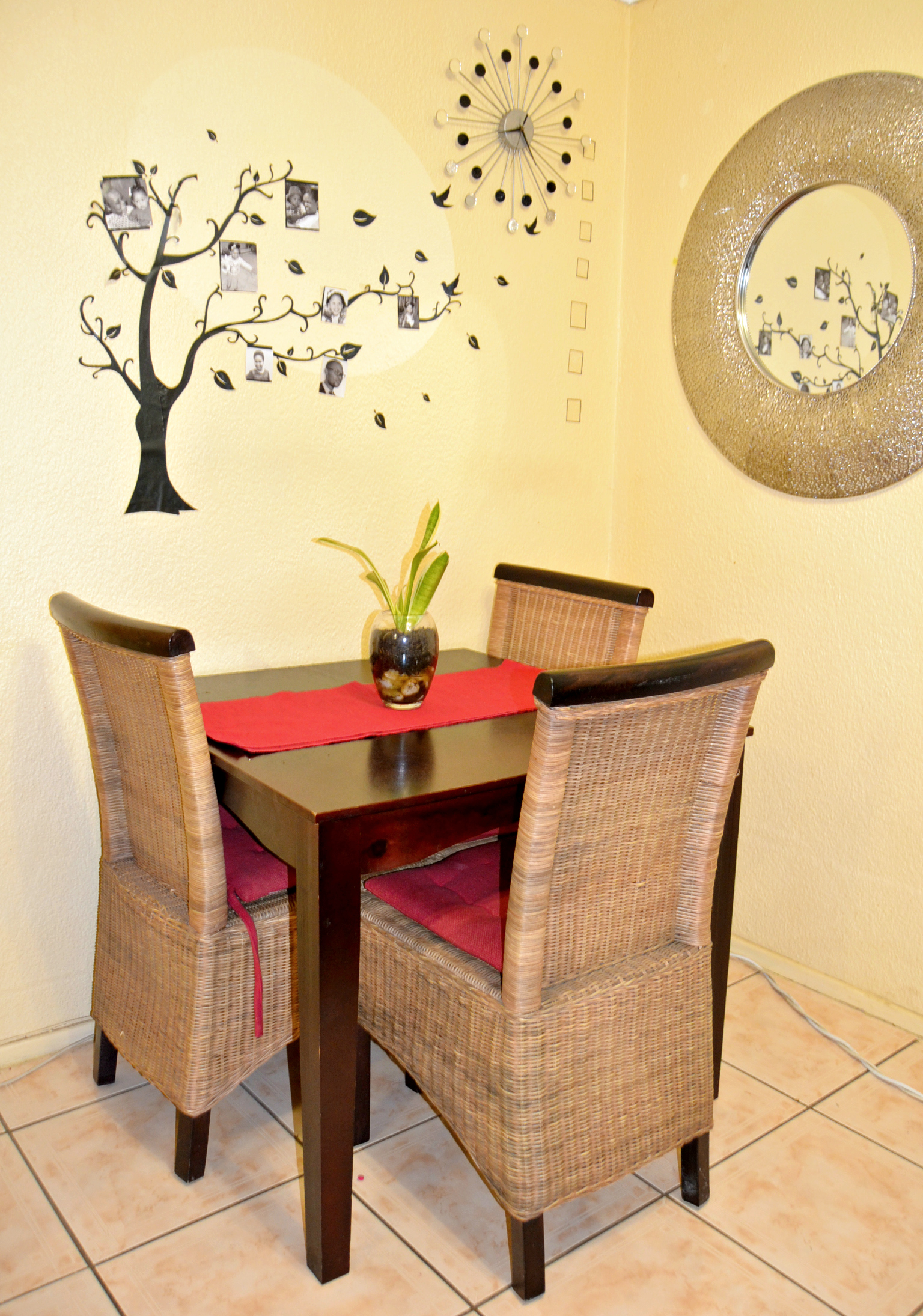 I really love our little dinning area though. It’s very intimate and simple. I feel the big mirror next to the table adds a little class and the family tree above the dinner table adds some sentiments as well. It’s so much fun when we all 3 sit together to eat our meals there. I swear if one of us isn’t home, it just doesn’t feel right eating at the dinner table.