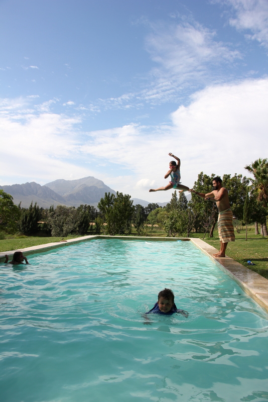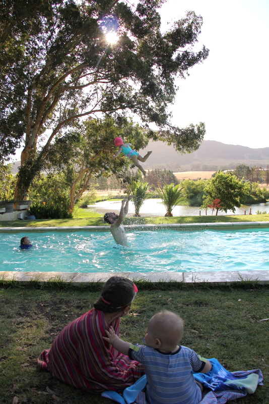 Apparently choosing Tulbagh in the heart of Summer is a bit of a silly idea. The weather is notoriously boiling, with temperatures running into the 40s on the regular. Luckily one the first and second day that we were there, the temps were in the low 30s, with a solid breeze and so it was really rather nice. The third day was a killer though! so freaking hot I actually got into my bather and was ready to swim. Except that… um, the water was freaking freezing! I don’t know how it was possible that the water was so cold, but it was. So… I didn’t swim. Much to the disappointment of the kids. Knox kept shouting, “You wearing your bather, why aren’t you swimming wit me? What’s da purpose of wearing it if you don’t swim?!”