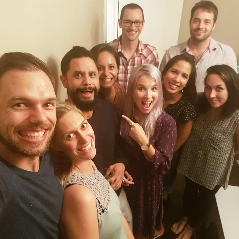 When the guys arrived at the house, the extra guests were hidden around the corner (with their cars parked way out of sight) and Claudette and I were chilling in the lounge having some drinks. We chatted a bit about what they did but then I got up to grab my keys so that we could go. “We were going to be super late for our reservation.”