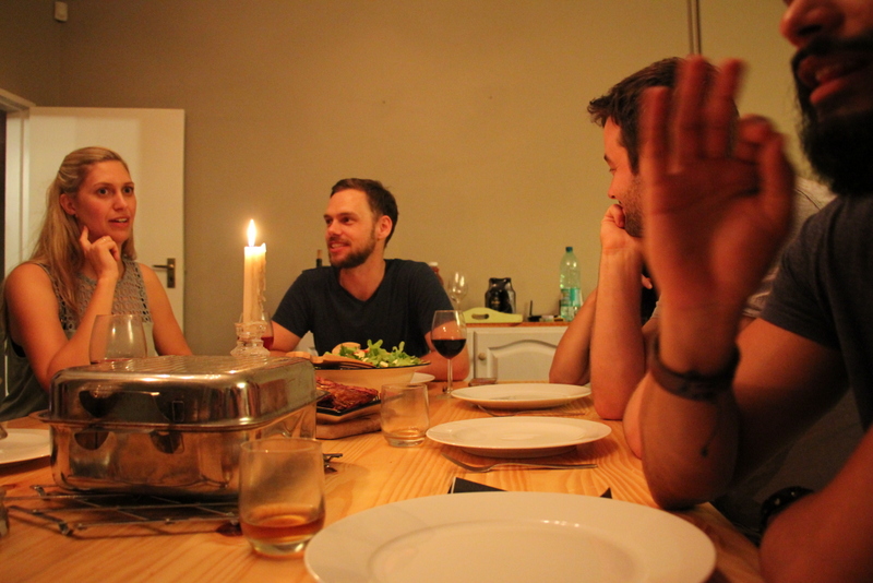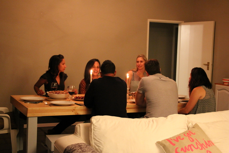 Simon lured Seth away for an early “boys night” before our “date night”. The plan was that as soon as they were done I would fetch him from the Patons house and we’d head to our dinner reservation. The Paton’s opened up their home to us again which was awesome because having it at home would have been extra suspicious. Everyone arrived at around 7.30pm and we got the fire going for supper. Seth and Simon were running late and so I said that I moved the reservation a bit later. It was all going to plan!