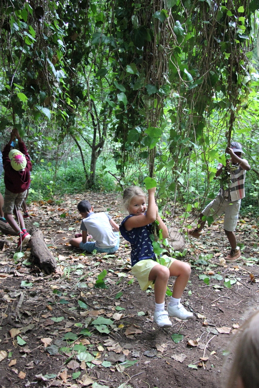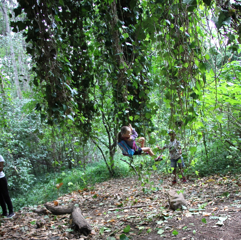 There is a massive tree with vines hanging down. You can swing on them like George of the Jungle or Tarzan or whatever, and the kids freaking loved it. Then on the one groupings of vines they had made a swing, which is even cooler than clinging to vines screaming AAaaaahhhhh.