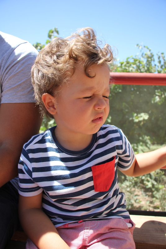 Now, we weren’t sure where to go and didn’t realise that the grape picking was not near the market. Like not in the least. So parking at the main parking and then walking had us all quite windswept and a bit lost. But we eventually found it, grabbed our little scissors and headed out on the tractor to go and pick some grapes!