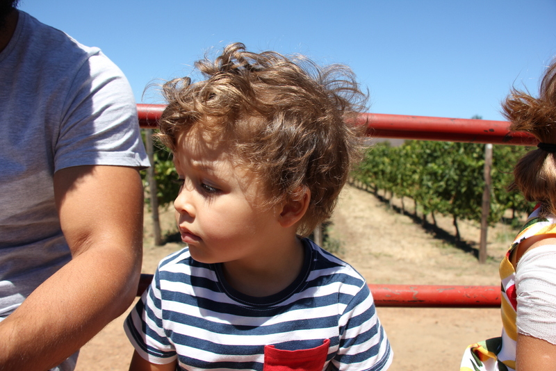 Now, we weren’t sure where to go and didn’t realise that the grape picking was not near the market. Like not in the least. So parking at the main parking and then walking had us all quite windswept and a bit lost. But we eventually found it, grabbed our little scissors and headed out on the tractor to go and pick some grapes!