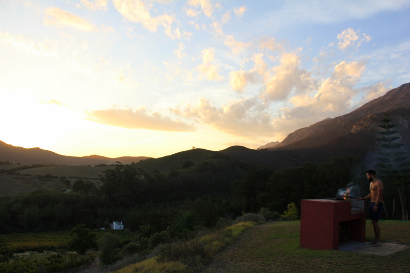 Each cottage has their own braai place that overlooks the vineyards and mountains.  The perfect place to watch the sunset as you rustle up some supper.