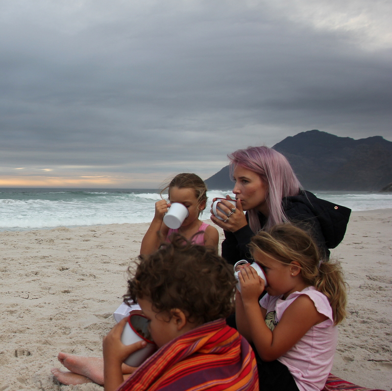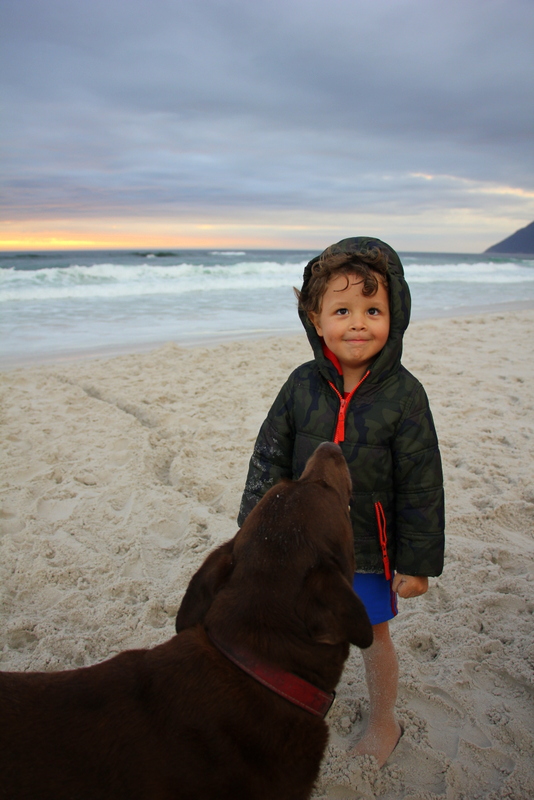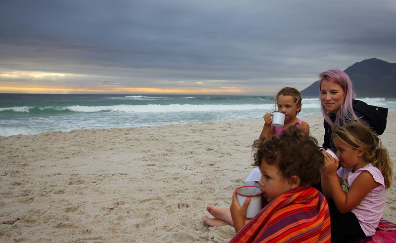 But things have changed.  The kids are older.  They walk on their own for the most part.  Except Knox but that’s also another story.  So we packed our coconut milk hot chocolate (two tins coconut milk, cocoa to taste and honey boiled up on the stove till thick and delicious) and headed to Noordhoek beach.