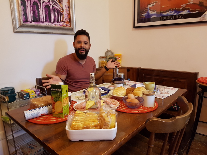 We set our alarms for 5am in the morning so that we could eat our delicious breakfast (made by our host Luisa – I’d really recommend her accommodation if you are ever looking for a room in Rome).  Her spread was definitely the most filling and varied of all the breakfasts that we had on our trip and we loved her for it.  In fact it may have created quite a high expectation of the rest of the breakfasts to come.  This one included rolls, toast, croissants, prosciutto, boiled eggs, cheese, nutella, jams and some donut type goodies that came pre packaged.  Yes we totally took a couple for the road because you know what the Rand is like there.