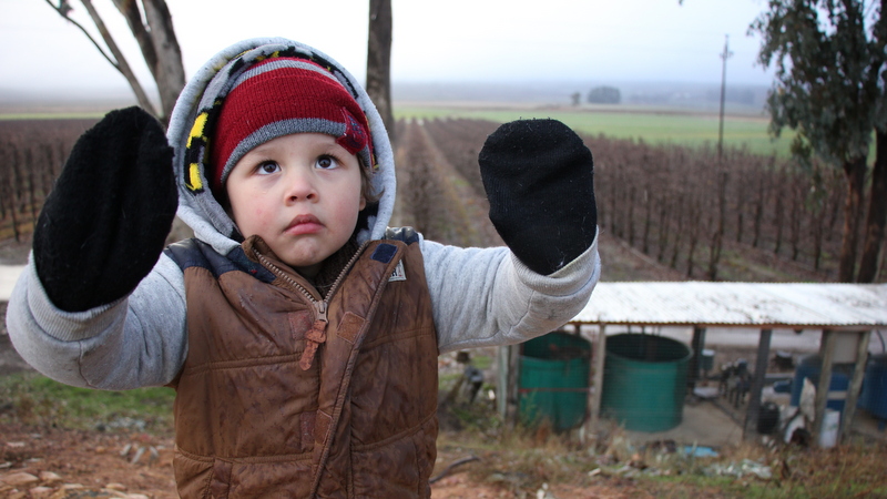 Knox didn’t have mittens, so we used socks. We told him that they would act as mittens and he was totally down with it!