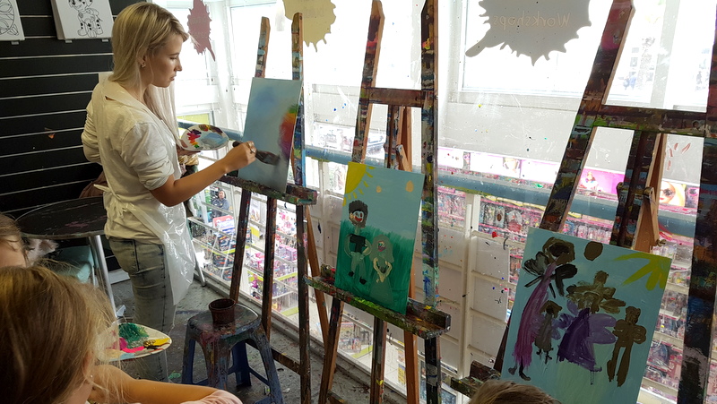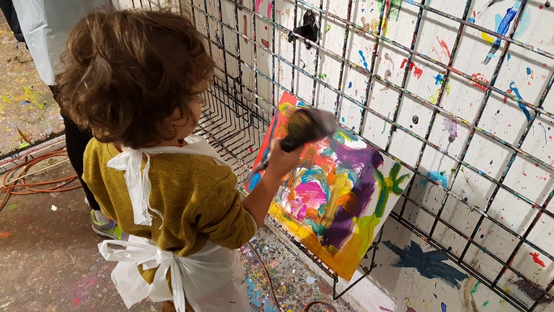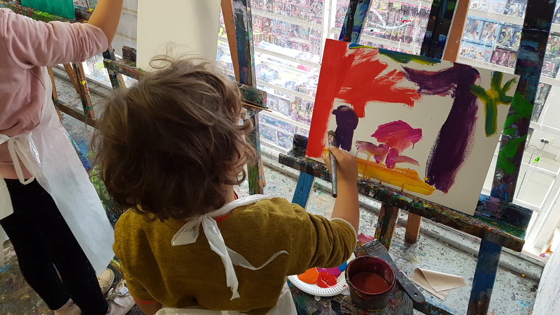 The only thing that I need to stress to you is that your kids and you, should be wearing older clothes that you don’t mind potentially messing up.  You do get an apron, but that doesn’t really stop it – paint has a way of landing up in weird places.  Just ask Kyla who ended up with it all over her shoulder.