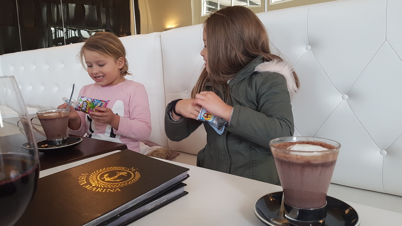 By the time that we were done we were starving so we headed over to Vista Marina which is the restaurant inside the Aquarium area.  Oh man, the food was great with a fantastic view and wonderful service.  It checked all the boxes and filled our bellies.  The kids especially enjoyed the hot chocolate!  Admittedly I had such order envy, it looked so good I had to do everything in my power not to succumb to ordering one myself.