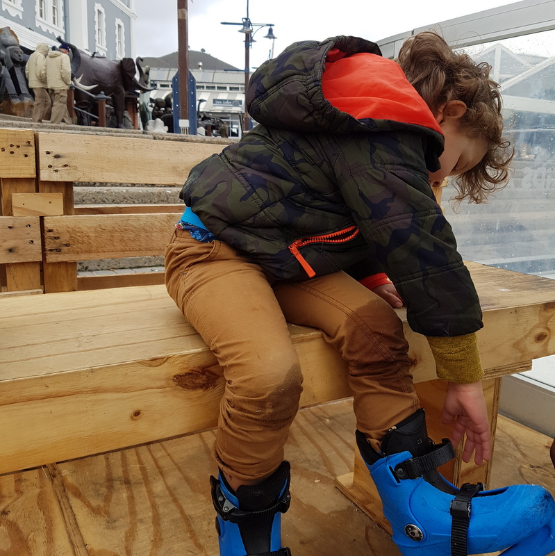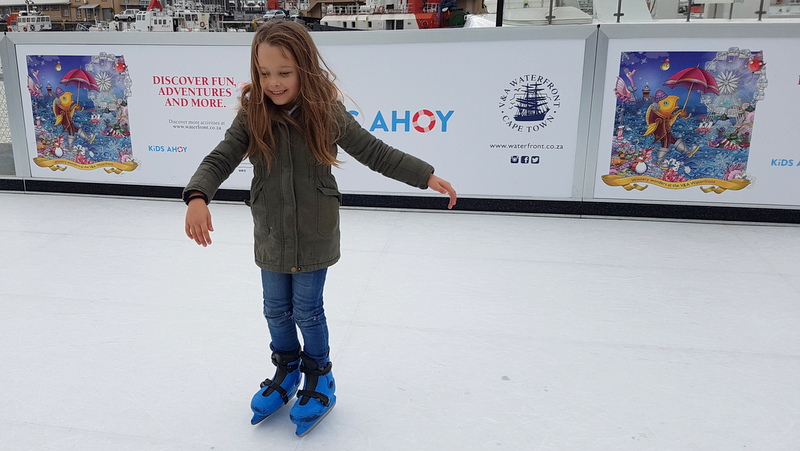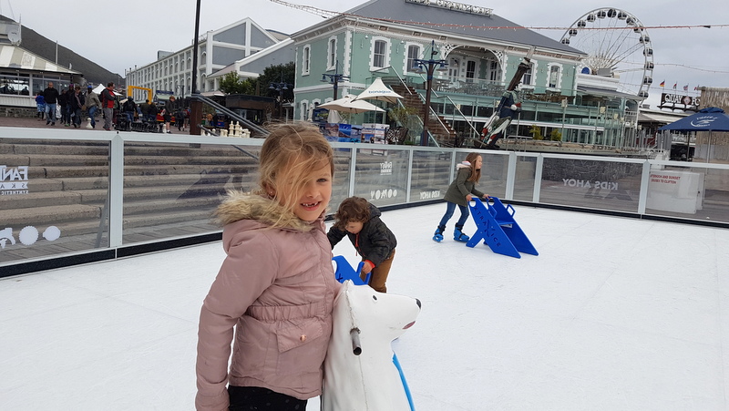 With happy tummies we headed out to try and find the ice skating rink.  It’s set up near the swing bridge at the Clock Tower.  It’s R30 for 20 minutes and they supply you with the skates and a hand trying to perfect the art of not falling on your face.  It was such a blast trying to remember how to skate and the kids nailed it pretty quickly although they enjoyed being able to push the little polar bears around too.