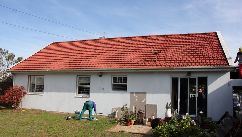 He also gave us some valuable tips on prepping the surface, how much paint to buy etc. In total we used two big buckets of the roof paint in their standard dark grey colour and two big buckets of white with a slight (super slight) grey tint on the walls (which did all of the outside and also the inside of our garage that was STILL yellow!).