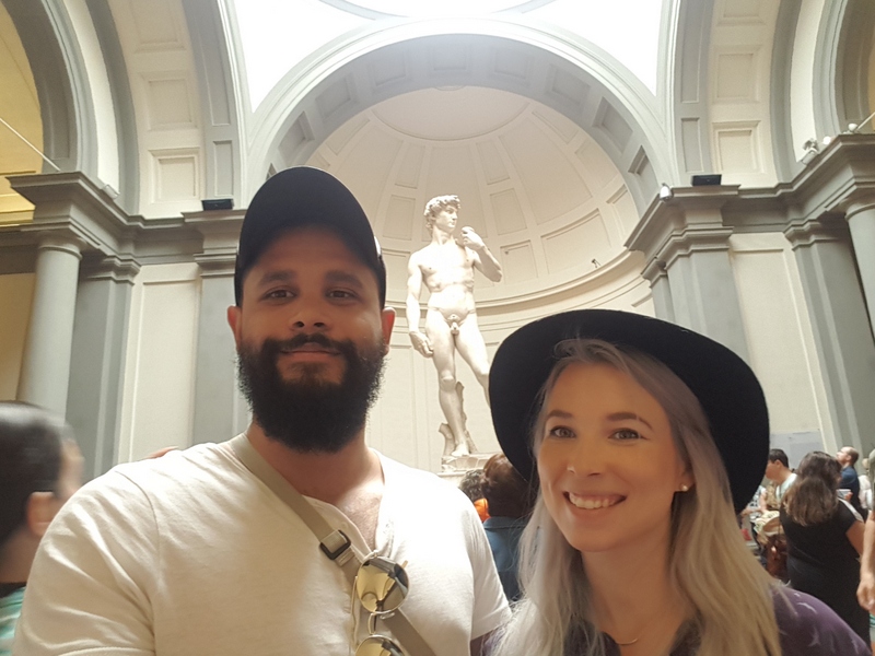 Day 6: Florence We’ve been in this city for 2 days now but we hadn’t checked off all the cool things to do here. So obvs we set that straight today. Highlights: 1. I’m not sure if it’s because Rome was the first city we explored or what, but for me, even though Florence is super, it’s not quite as amazing as I found Rome. 2. We started our morning late on one espresso and a prayer that we’d make it to see David. We got there around 9 and the line was already on 3 hours waiting time. Cray cray. So we got a tour and we were inside in 15 minutes with an hour long explanation too. 3. I don’t think I would have appreciated David as much as I did if it were not for the tour guide. I actually felt moved looking at him. (David – not the tour guide ??) 4. We had lunch standing in a random bar like locals. (It’s cheaper than sitting) 5. Then we got our tickets for the Duomo etc. We climbed the bell tower (it’s really high up hence my weird face), went into the other thingy and the museum. Sadly we have to miss the Duomo climb to the top and Cathedral because it was full. 6. Florence is by far the most affordable city we’ve been to, so we bought some goodies to take back. 7. The underground subways don’t smell like wee. 8. We went over the Vecchio bridge and after I bought a small painting the sweet man gave me a little lesson. It was like being taught by Michael Angelo himself. ? 9. We went up to the Piazza to watch the sunset over Florence and it made me love this city a little more and now I’m sad to leave. 10. I actually took the anti inflammatories today and this really weird thing happened – it helped my knee feel better. Who knew right? We still managed to keep to a real moderate 18km today so we’re getting better at this bus and chill thing. Tomorrow we head to Venice for the last leg of our trip. Bitter sweet really. I’m loving all of this exploring but I’m starting to really miss my babies!