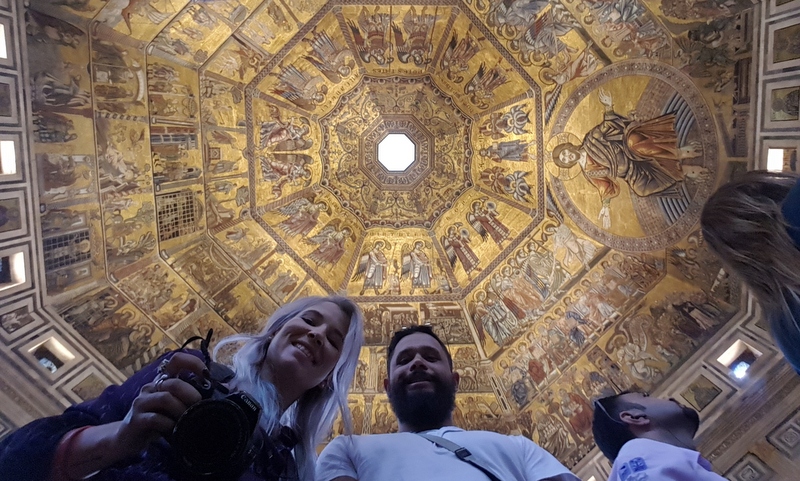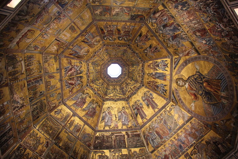 The tickets also gave us access to another dome shaped building across the road from the Duomo.  Another one that had ceilings done with gold leaf.  The amount of gold hiding in artworks around Italy is bizarre.  This building told the story of the bible in pictures on the ceiling.  It was hurting my neck to peer up at it but it always blow my mind how they were able to do this.