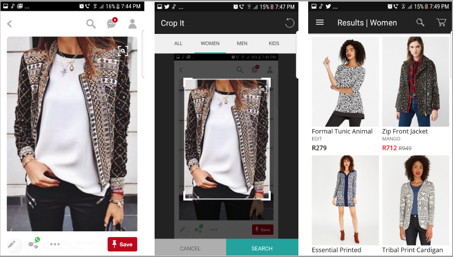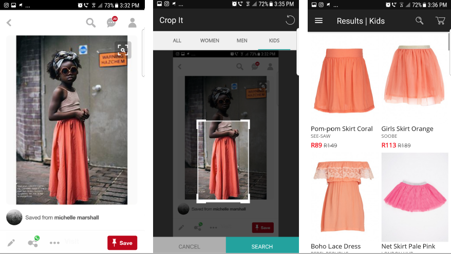 If like me you spend your sporadic free moments scrolling through Pinterest or paging through magazines – this is something you will love!  When you come across something absolutely beautiful that someone is wearing and you want it really badly, now you don’t have to search through all the malls.  Just hop onto your Spree app and bang in your pic.   Once you’ve popped the image in the search feature it will bring up all the items that Spree has in the same colours, patterns and even textures!  It’s the first technology like this in the country and that’s pretty damn helpful!