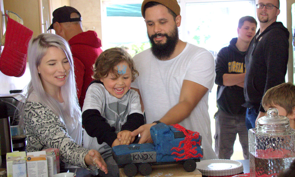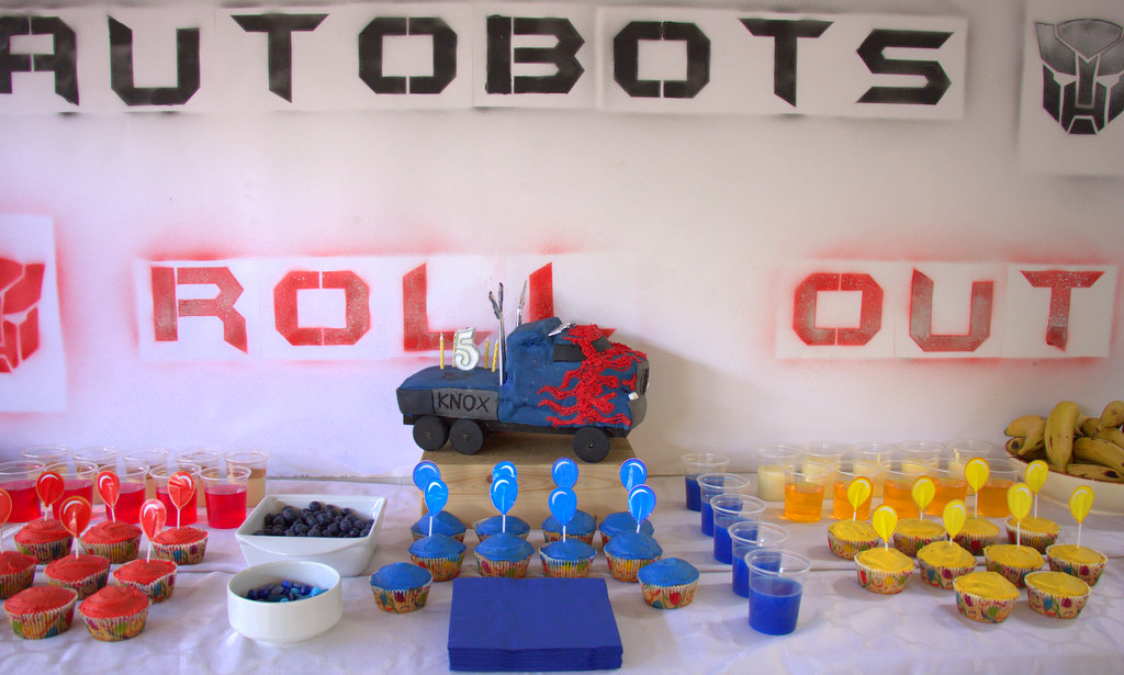 Trying to think of themed party food that would look part of the theme was basically impossible. Even Pinterest let me down. There was just nothing! So instead of stressing about it we went with a red, yellow and blue theme table. We had it out in that garage this year because another thing that consistently comes with our birthday every year is rain… So we needed a safe, dry spot to house everyone should it get wet outside (which it totally did)!
