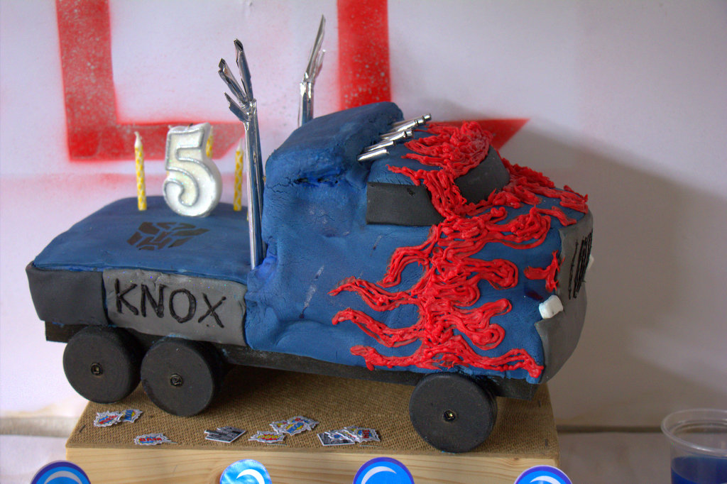 The cake was another story (as you will see in the video). Optimus Prime had a bit of a rough night. The icing dripped all over, the fondant cracked everywhere, it started to sag to the side and it basically looked nothing like what we envisioned in our head. Which is pretty much how every cake goes too. Despite all that, I think overall it looked OK. If you looked at only the one side and squinted slightly. hahah