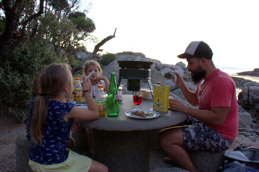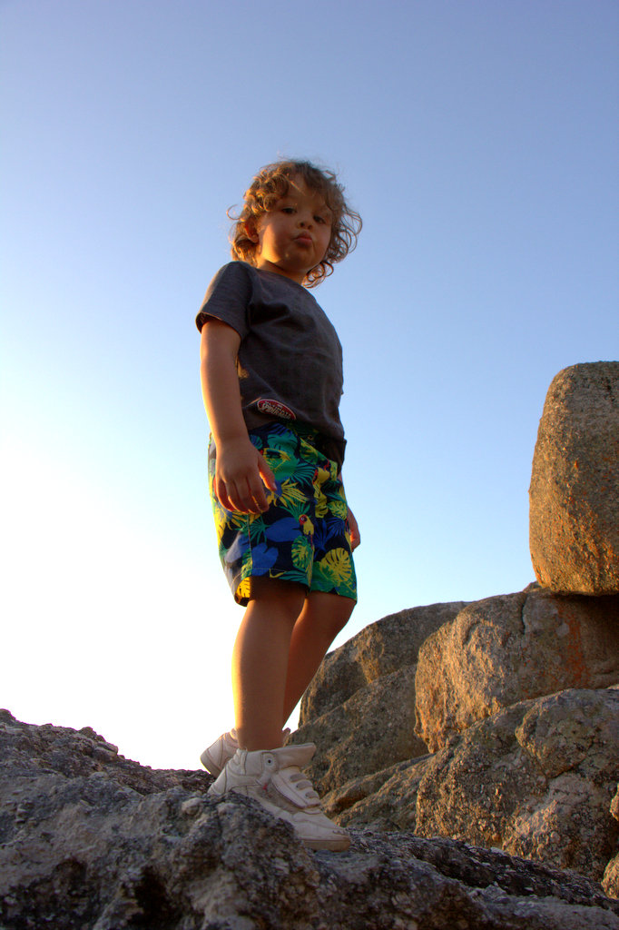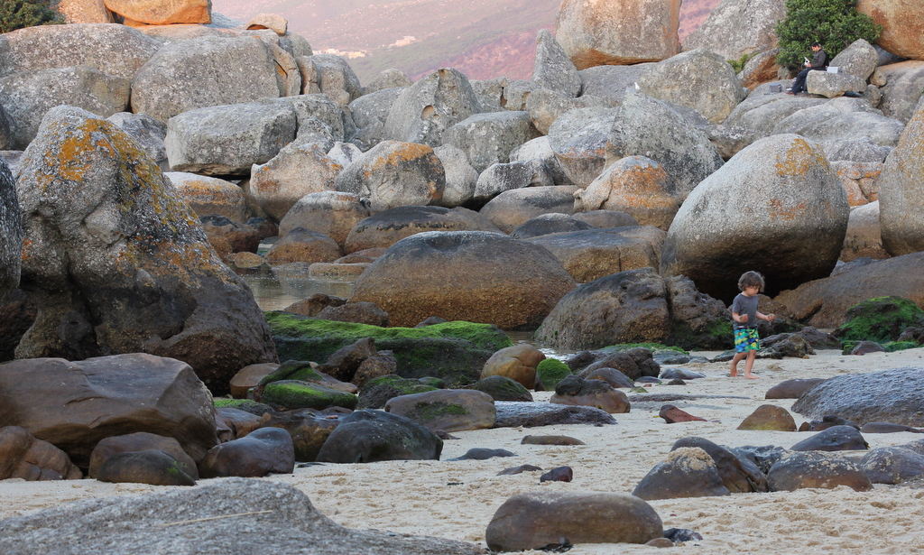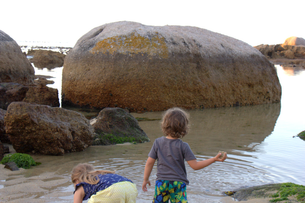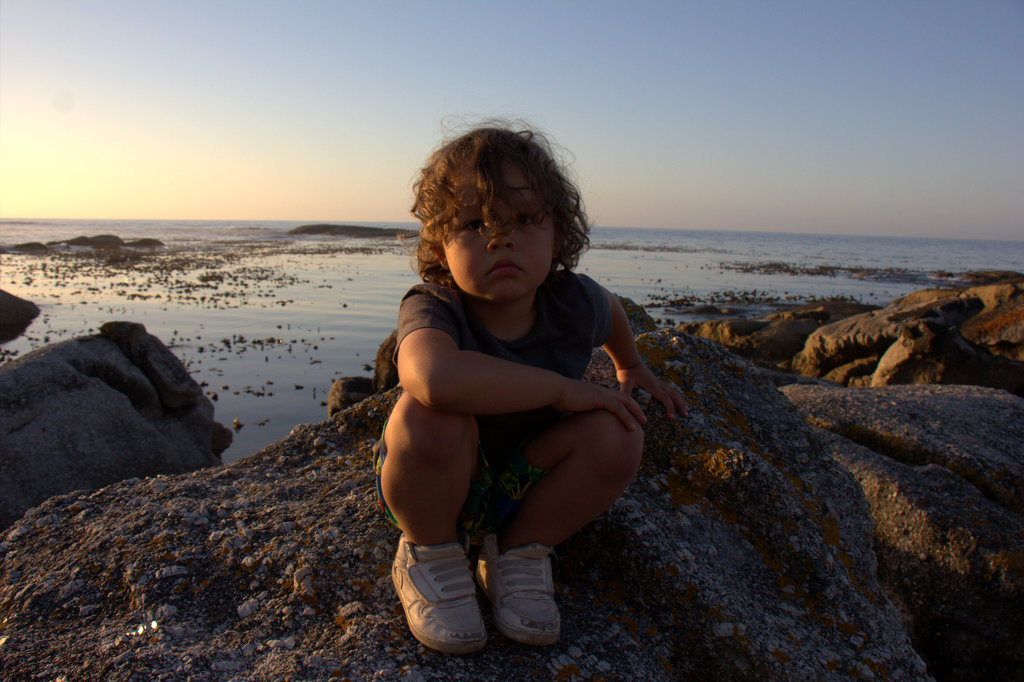 We picked a spot high up so we could watch the sunset, so it was high on the rocks and not on the actual beach. The only rough part is that we parked off next to a group of people who swore in every second word. Which was not great for the kids. So we went down and spent a little time practising our photography skills (me) and sand castle building skills (them).