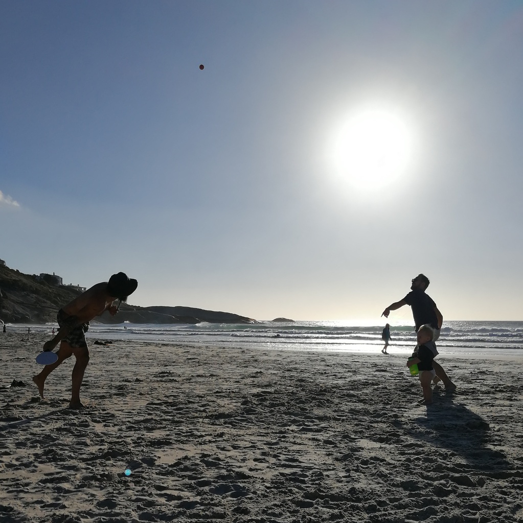 We popped into the local Spar and then went over the mountain to Llandudno to watch the sunset. It was flipping cold though. Yoh. We sat in the wind and at our rolls with ham, cheese and a healthy dose of sand. The guys played with the bats and the ball despite the wind. Seth even swam! It was great.