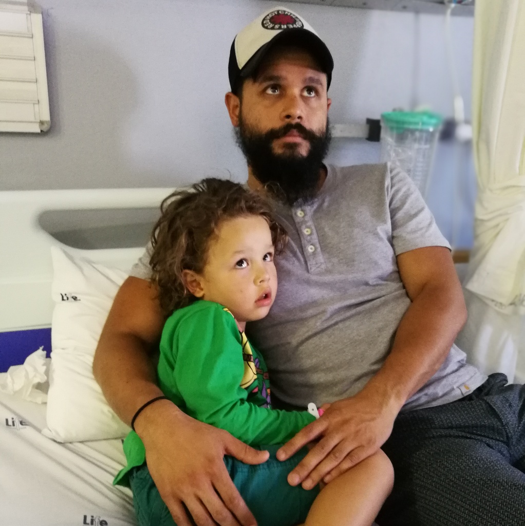 It was finally time and he hopped into the bed, ready to get wheeled to the theatre.