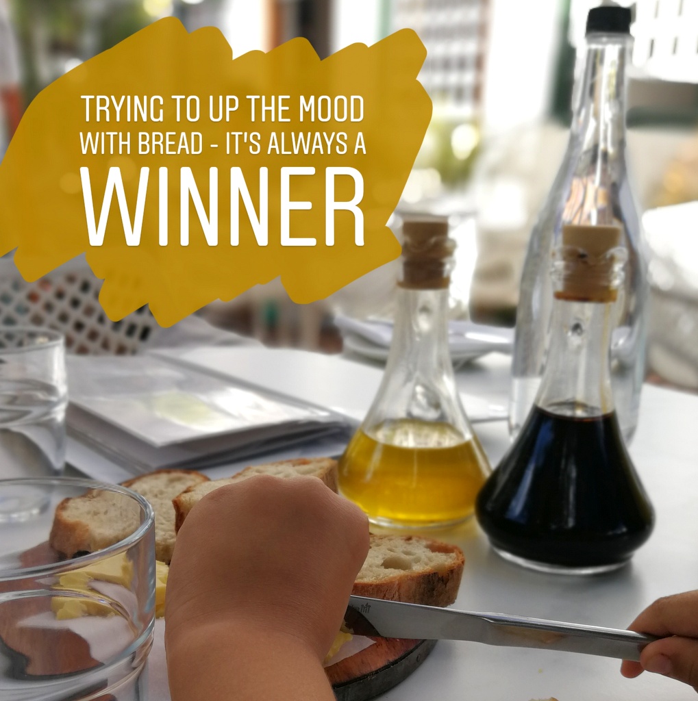 Our table was on the outside terrace area of the Blanko restaurant which was perfect because we could listen to the live jazz music and keep an eye on our kids at the same time. Winning! Before the kids were allowed to go and attack, uh, I mean, go and play in the awesome new play area, we needed to pick up the mood. And seriously, what’s a better mood enhancer than bread? Nothing – that’s what.