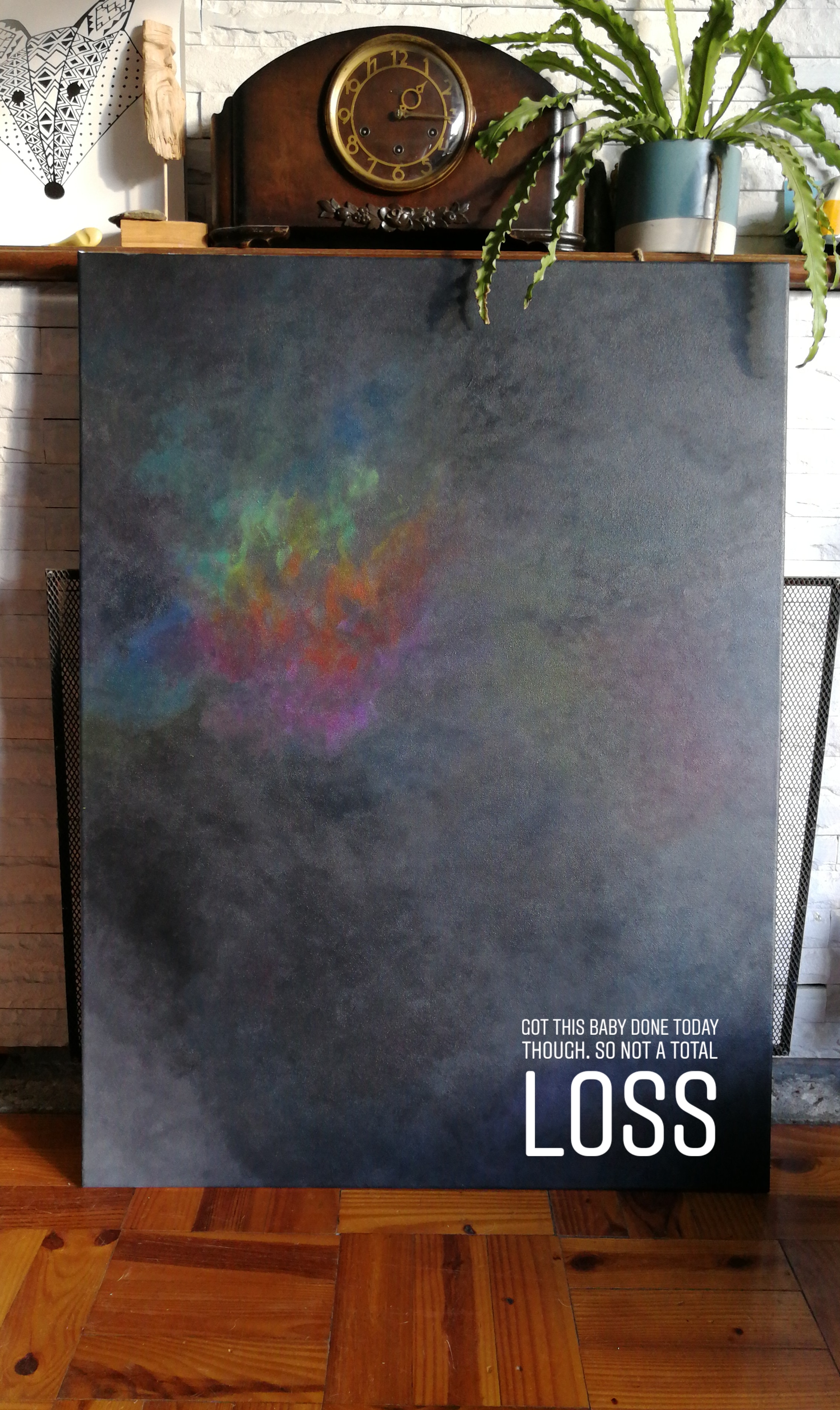 Pleasantly Surprised: Quite a while back I started this painting for my office. I like the darkness of it so much. But this wasn’t where I wanted it to end. No, no, no. It needed some kind of subtle rainbow. Because I am actually obsessed with rainbow colours. Like crazy obsessed. Like concerningly obsessed. It’s not like I wear rainbows or anything, but when I see anything in a perfect colour wheel or full of colour my heart actually skips a beat.